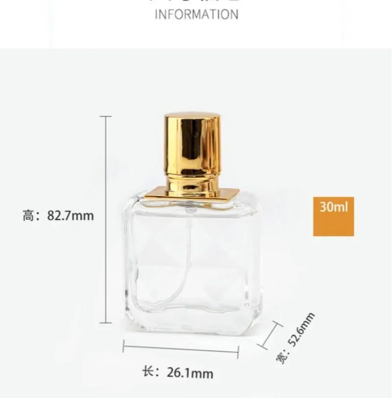 Glass Square Perfume Bottle Portable Empty Liquid Spray Bottle Dispenser Fine Mist Refillable Bottles Perfume Container 30ml